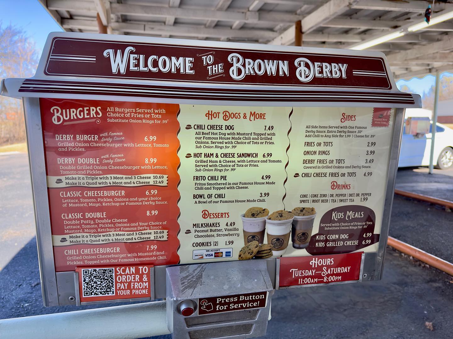 The original Brown Derby was destroyed in Shawnee's April 19, 2023 tornado, but they rebuilt and have reopened serving the same beloved burgers as of July 26, 2023! Stop in and enjoy classic food in this newly restored, historic treasure.