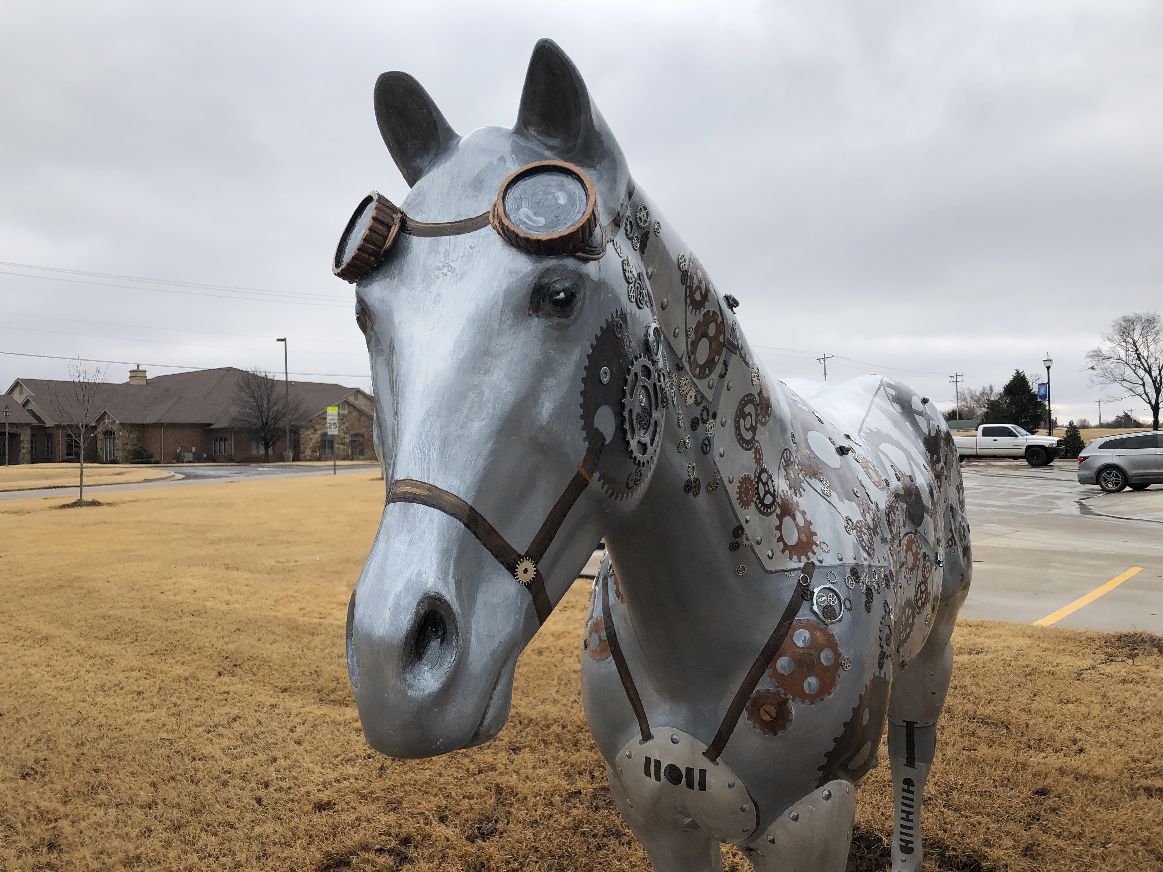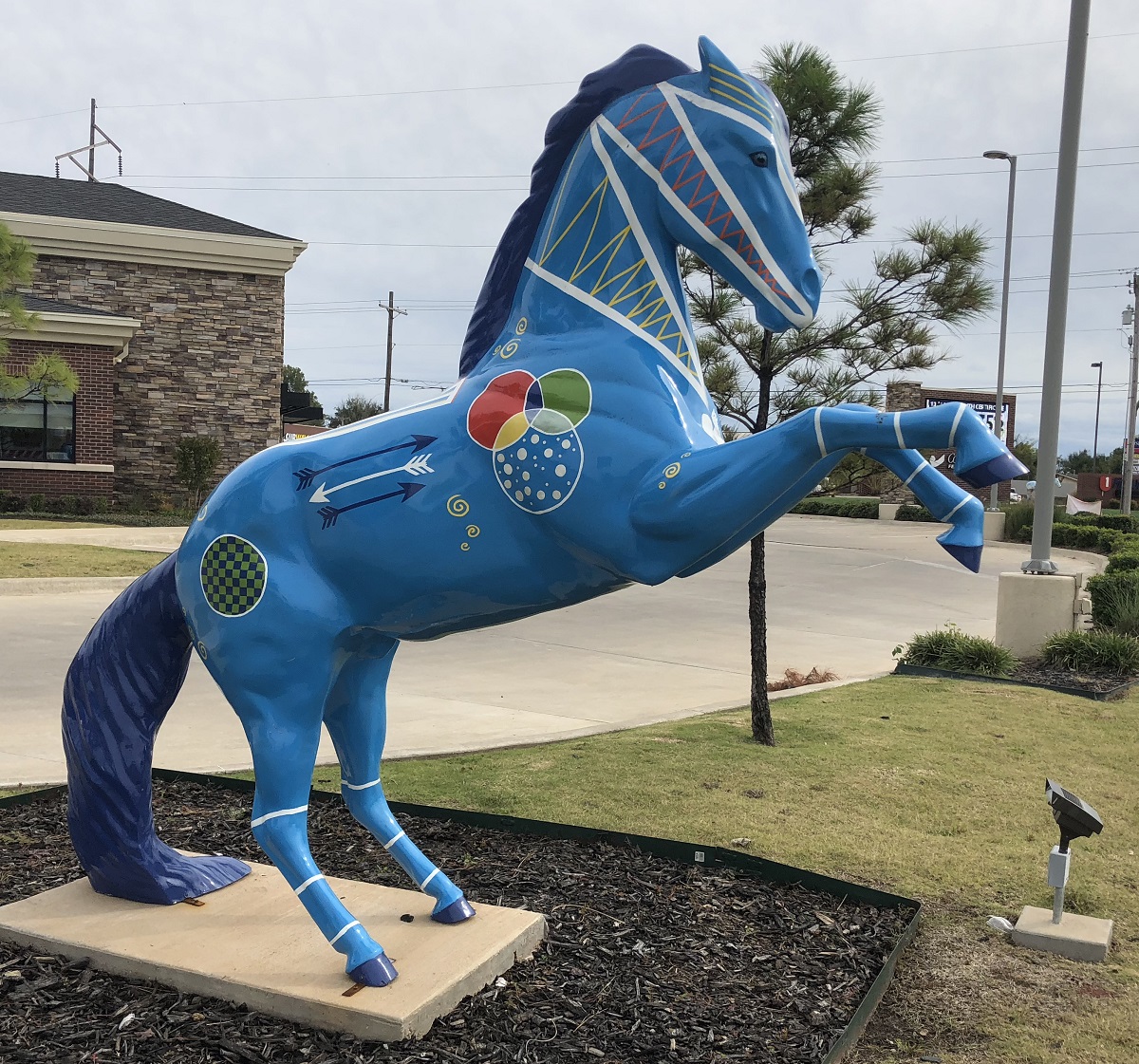 If you’re from out of town, one of the first things you’ll probably notice about Shawnee driving around are the large, painted horse sculptures: Scattered throughout town on street corners overlooking sidewalks, either standing strong or bucking wildly, all with bold and unique designs.