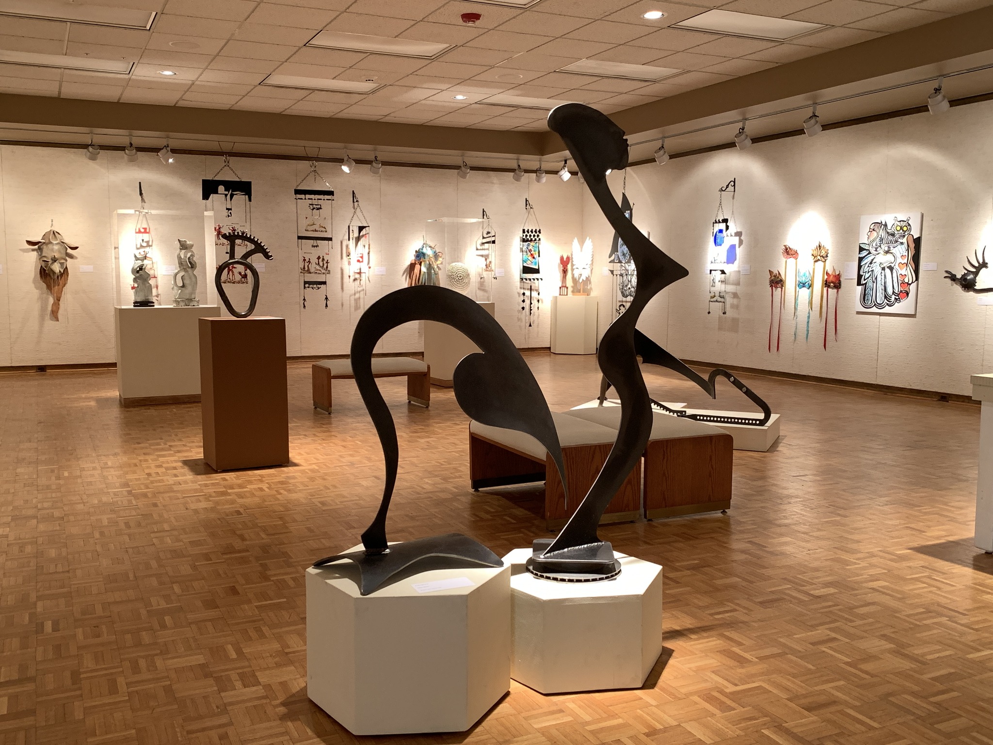 The Multi-purpose Area measures 27 x 45 feet and will accommodate up to 64 people seated at tables or 100 standing or seated in rows. The temporary Gallery space is available on occasion. This 35 x 60 foot room will accommodate up to 160 people seated at tables, and its parquet flooring is great for dancing!